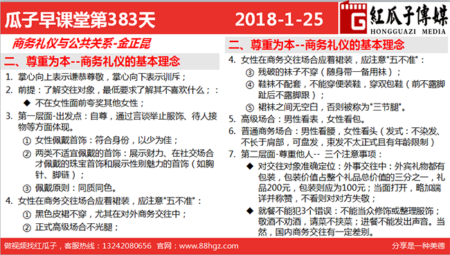6. 普通商務(wù)場合:男性看腰,女性看頭(發(fā)式:不染發(fā)、不長于肩部,可盤發(fā),束發(fā)不太正式且有年齡限制)