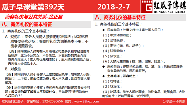 A. 規(guī)范性:商務(wù)人員接人待物的標(biāo)準(zhǔn)做法;比如吃自助餐要多次少??;