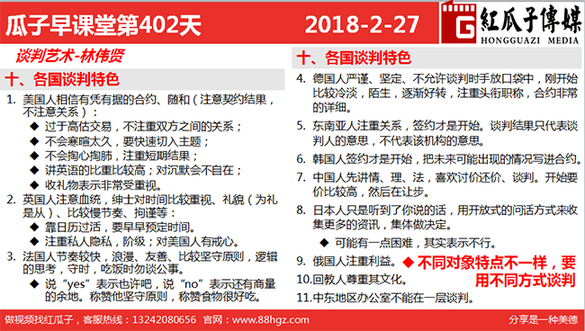 ◆不同對(duì)象特點(diǎn)不一樣,要用不同方式談判。