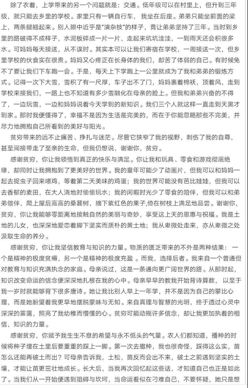 寫(xiě)文章感謝貧窮,感動(dòng)了網(wǎng)友