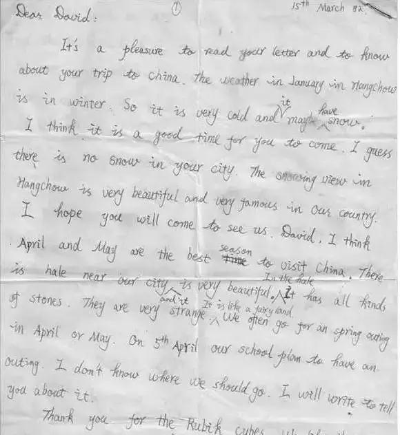 Ken Morley 一家人回國后,馬云和 David 成了筆友。馬云定期給 David 和 Ken 寫信。