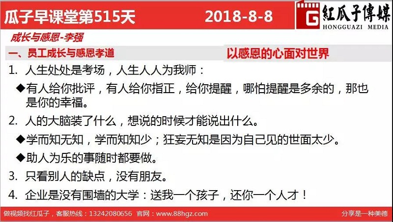 紅瓜子傳媒首頁>相關資訊>最新動態(tài)>瓜瓜早課堂第515期-員工成長與感恩孝道