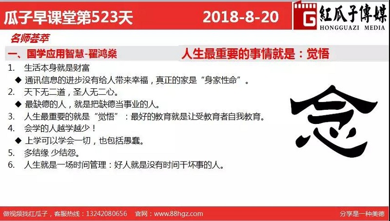 紅瓜子傳媒首頁>相關(guān)資訊>最新動(dòng)態(tài)>瓜瓜早課堂第523期-人生最重要的事情就是:覺悟