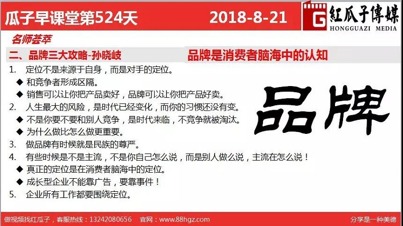 紅瓜子傳媒首頁>相關(guān)資訊>最新動態(tài)>瓜瓜早課堂第524期-品牌三大攻略