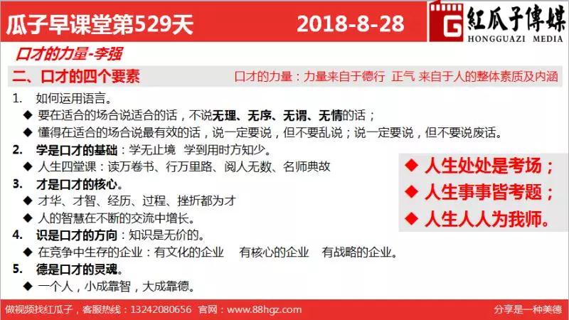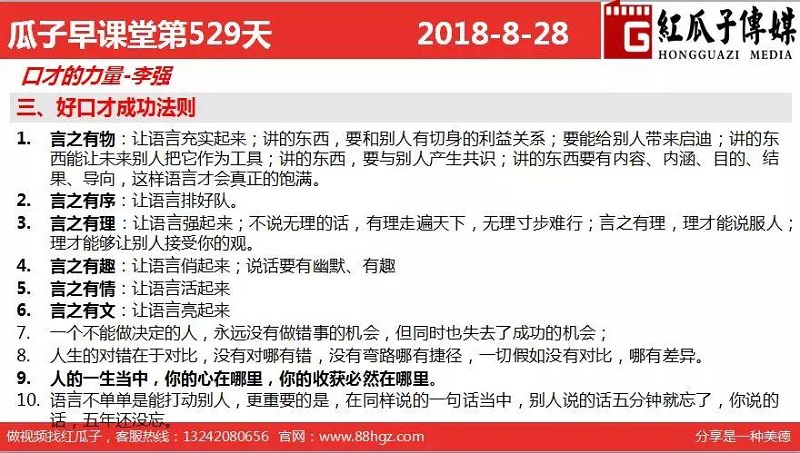 紅瓜子傳媒首頁>相關(guān)資訊>最新動(dòng)態(tài)>瓜瓜早課堂第529期-口才的力量