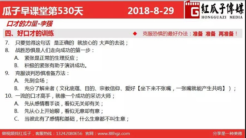 紅瓜子傳媒首頁>相關(guān)資訊>最新動(dòng)態(tài)>瓜瓜早課堂第530期-好口才的訓(xùn)練