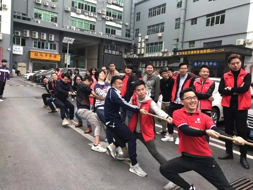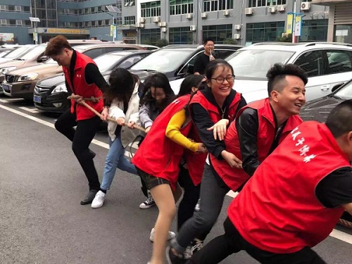 當比賽的哨聲一響起,全體參賽人員使出全身的力量投入到拔河比賽中,現(xiàn)場的吶喊聲、加油聲此起彼伏。
