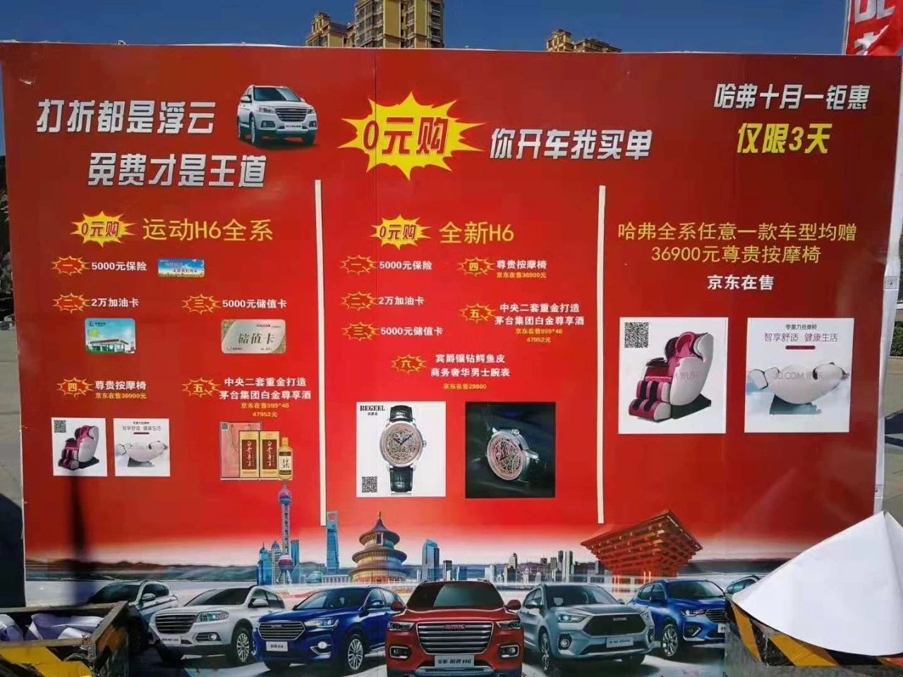 A)購(gòu)11.3萬車送:20000元加油卡+5000元保險(xiǎn)+5000元保養(yǎng)卡+36900元頭等艙按摩椅+47952元茅臺(tái)白金酒廠出品白金尊享貴賓酒(8箱)。