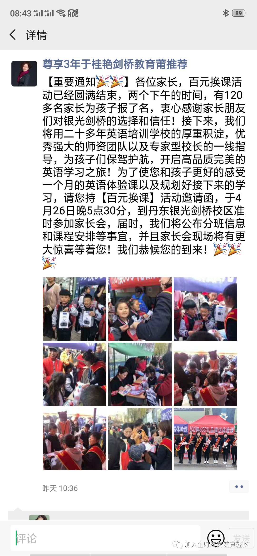 負責人于校長表示此次活動的效果非常好,家長們一方面是對銀光劍橋教育教學的認可,還有就是對有品牌品質禮品的認可。本次活動目標100人,截止活動第二天已經(jīng)超額完成!據(jù)后來于校長反饋,有120多名家長為孩子報名了。