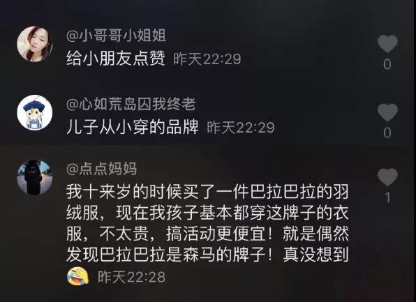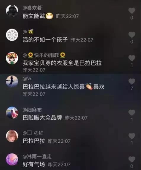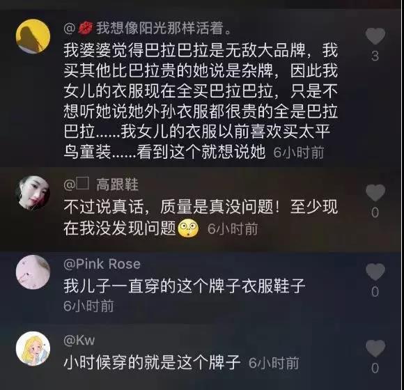 在評論中,無數網友開啟了對這個國民童裝品牌的熱議,很多人感慨自己是穿著巴拉巴拉衣服長大的,成為了父母還在繼續(xù)給孩子穿,看到這條視頻,無意中引起了很多童年的記憶和共鳴。