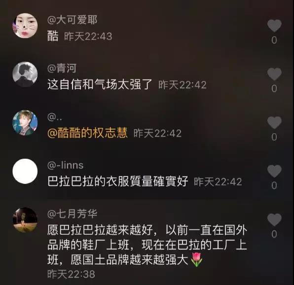 在評論里,不少內容是大眾對于巴拉巴拉品牌和產品的認可。甚至一些巴拉巴拉的工廠和面料供應商員工看到自己服務過的品牌在時裝周的表現,都由衷感受到自豪感。
