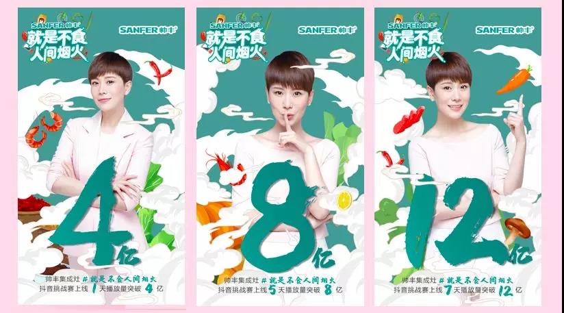日前,帥豐集成灶在抖音平臺發(fā)起了#就是不食人間煙火 挑戰(zhàn)賽,作為行業(yè)首個全國挑戰(zhàn)賽,帥豐極具創(chuàng)意的新玩法和配備豐富的新奇工具引發(fā)年輕用戶的熱烈追捧,各路明星、達人紛紛曬出自己下廚房的“控煙大法”及護膚訣竅等生活點滴。短短十余天時間,此次帥豐集成灶#就是不食人間煙火 挑戰(zhàn)賽視頻總播放量達16.6億,累計評論次數(shù)超142萬次,累計分享次數(shù)45萬多次,點贊數(shù)更是高達2583萬次。經(jīng)過這次活動,帥豐集成灶控煙率99.96%的產(chǎn)品競爭力已經(jīng)給潛在消費者留下了深刻印象,其創(chuàng)造健康廚房的美好生活理念也深入人心。