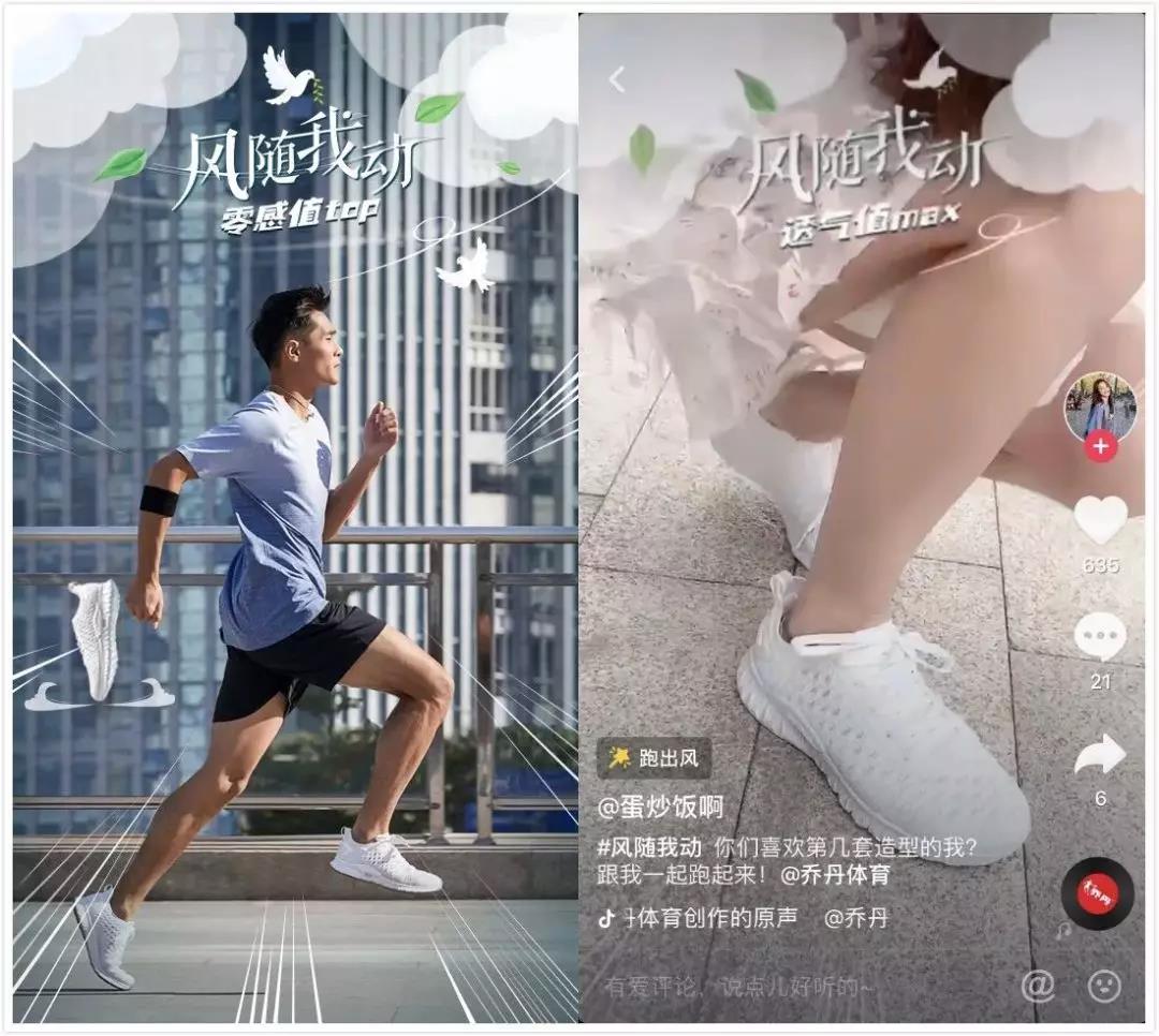 在深入調(diào)查跑步人群的心理后,喬丹體育發(fā)現(xiàn)每一位跑者都享受與風(fēng)互動的感覺。為此喬丹探尋全新的跑鞋呼吸方式,希望能夠給予雙腳足夠的“風(fēng)力”,馳騁跑道。針對這一概念,喬丹體育發(fā)起主題為“風(fēng)隨我動”的抖音挑戰(zhàn)賽,并攜一眾跑步達人組成追風(fēng)聯(lián)盟,號召天生跑者加入這場“追風(fēng)挑戰(zhàn)”。