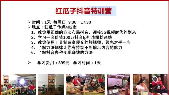 5G時(shí)代來(lái)臨,信息以短視頻形式來(lái)傳播,抖音是全球短視頻流量最大的平臺(tái),沃爾瑪一條抖音增加2000萬(wàn)收入,一條抖音為華為手機(jī)單店增加650萬(wàn)收入,怎樣用好抖音,對(duì)我們個(gè)人和公司都非常重要,紅瓜子抖音研究院每天都有組織《抖音劇場(chǎng)》節(jié)目和每周日都舉行《抖音特訓(xùn)營(yíng)》培訓(xùn),歡迎大家積極參加。