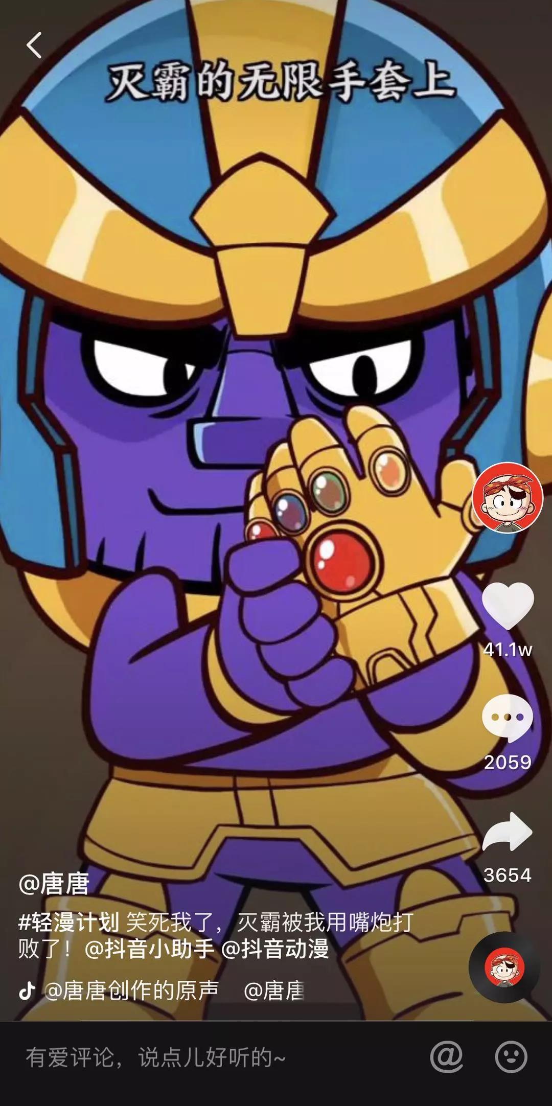 觀察抖音號「唐唐」已發(fā)布的視頻內(nèi)容,除了關(guān)于電影的搞笑解讀,還包括搞笑、吐槽的動畫內(nèi)容。例如,在唐唐眼里,減肥是不可能的!白天的時候還不感覺餓,一到晚上就可以胃口大開吞下一條鯤……