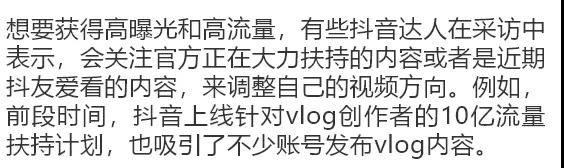 對此,不少抖音達人都提到幾點,一是優(yōu)質(zhì)內(nèi)容,做能引發(fā)觀眾共鳴的視頻;二是多做系列視頻,給觀眾一定的期待;三是會根據(jù)粉絲的喜好,調(diào)整自己的視頻方向。
