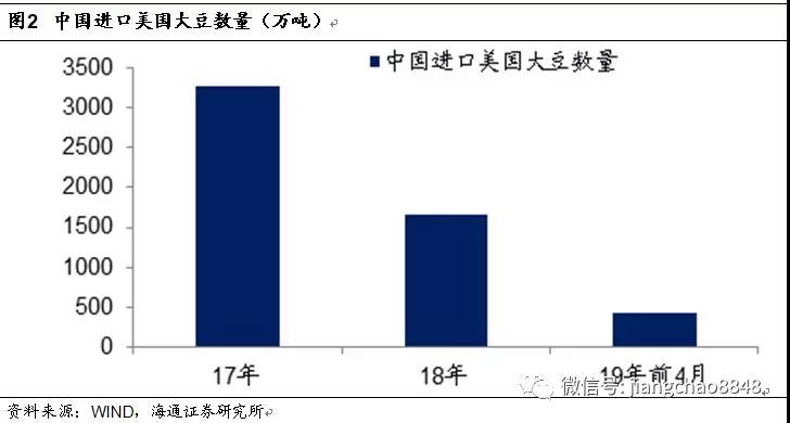 我國(guó)是美國(guó)最大的農(nóng)產(chǎn)品出口市場(chǎng),尤其是大豆。根據(jù)中國(guó)海關(guān)的數(shù)據(jù),我國(guó)17年進(jìn)口了3285萬(wàn)噸的美國(guó)大豆,然而在18年中美貿(mào)易摩擦爆發(fā)之后,18年我國(guó)進(jìn)口美國(guó)大豆數(shù)量下降了一半至1664萬(wàn)噸。而在19年的前4個(gè)月,我國(guó)進(jìn)口美國(guó)大豆數(shù)量同比又萎縮了70%。