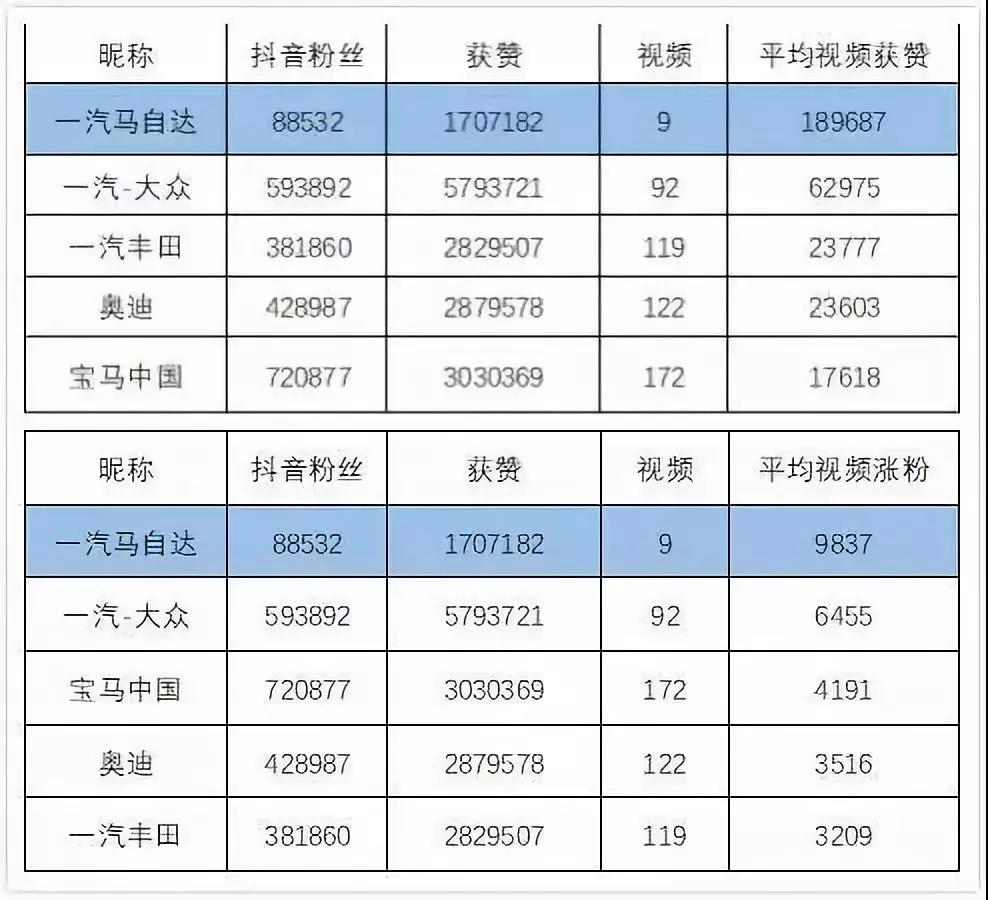 不管是從平均點贊數(shù)還是平均漲粉數(shù),一汽馬自達(dá)在同行業(yè)的賬號中都排名第一。