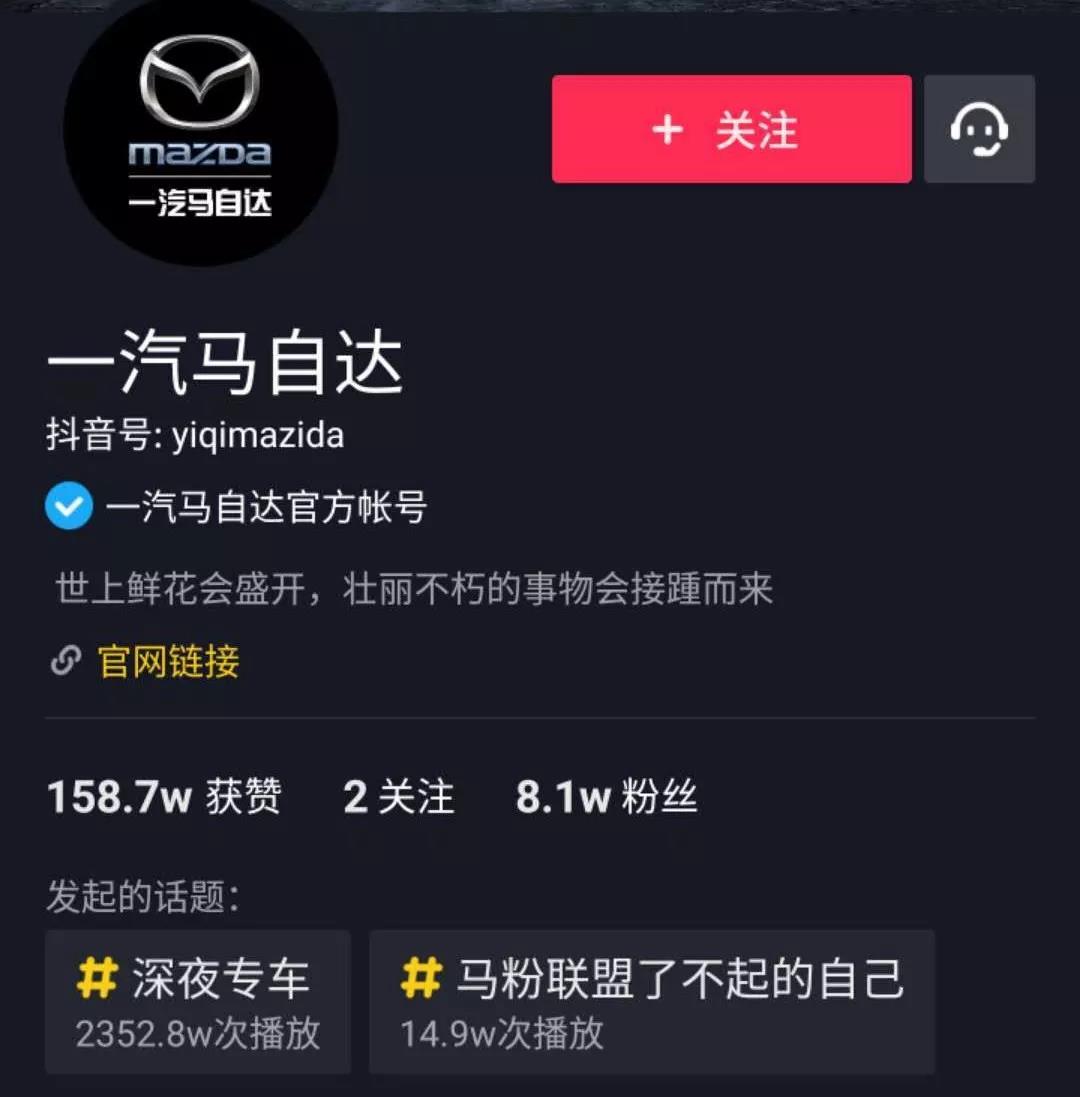 也希望“一汽馬自達(dá)”繼續(xù)改進(jìn)目前的劇情風(fēng)格,不久的將來成為抖音汽車品牌的一個頭部賬號!