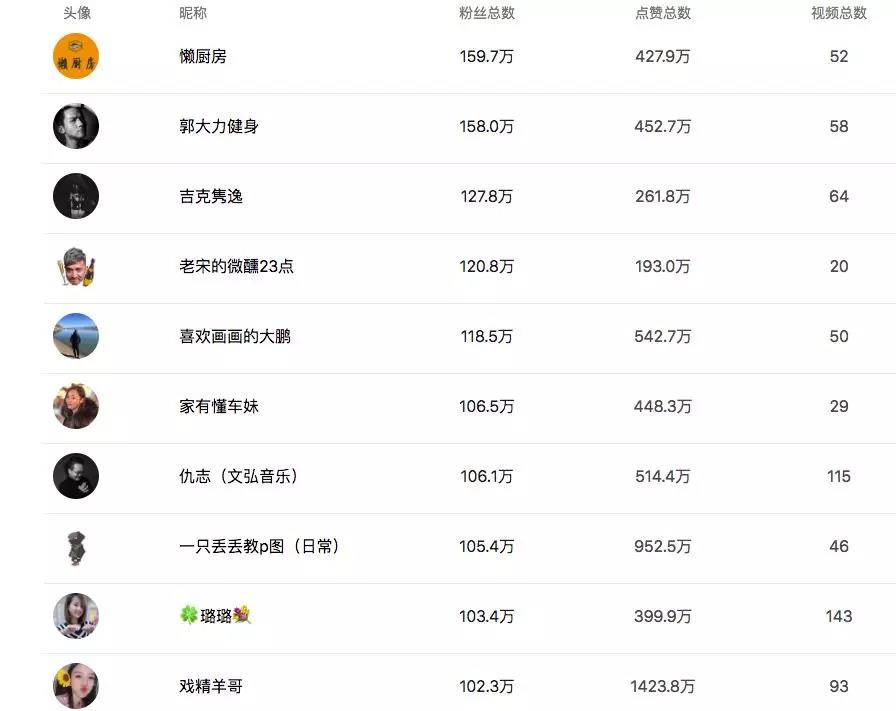展示一下前十位的詳細(xì)數(shù)據(jù),更多數(shù)據(jù)大家可以點(diǎn)擊末尾的抖大大小程序,到“抖音熱門收藏夾”查看。