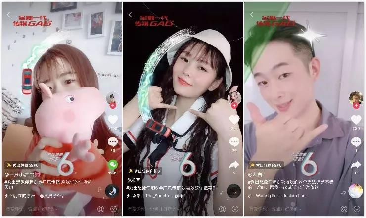 活動的創(chuàng)意非常簡單,只需要用戶尋找到關(guān)于“6”的元素,特效貼紙的綠幕就會揭開,代表著屬于用戶自己的電影正在上映,通過鼓勵用戶使用貼紙開放性創(chuàng)作,并且在傳播過程中,通過參與者的手勢、特效、文案不斷強(qiáng)化用戶對全新一代傳祺GA6的記憶。