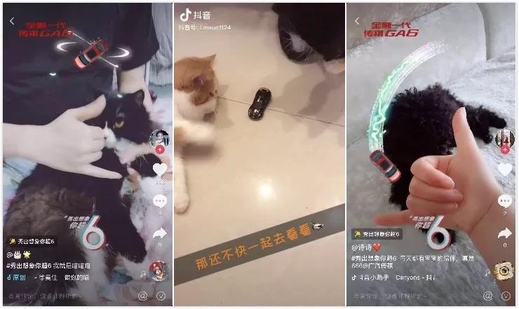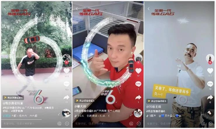 另外廣汽傳祺GA6本輪營銷事件的打造,以抖音為主陣地,在廣汽傳祺官網(wǎng)、戶外廣告、多家媒體廣告全面布局抖音#秀出想象你超6 挑戰(zhàn)賽活動信息,全力與顧客進(jìn)行互動,發(fā)起這次基于“參與感”的全民超級挑戰(zhàn)賽盛宴。