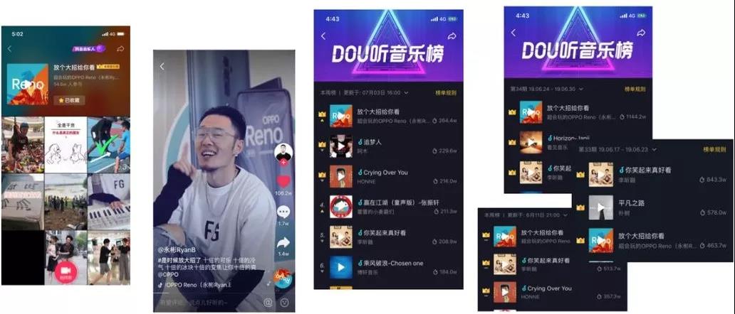 這條單曲使用近50萬次,持續(xù)3周霸占品牌DOU聽音樂榜榜首,不少用戶表示“被音樂征服”。@我家大鼠條 等達(dá)人使用單曲的作品均獲得100萬+點(diǎn)贊。朗朗上口的旋律,帶動(dòng)品牌迅速走紅全網(wǎng),被篩選后留下的廣告也為OPPO沉淀了豐富的音樂資產(chǎn)。
