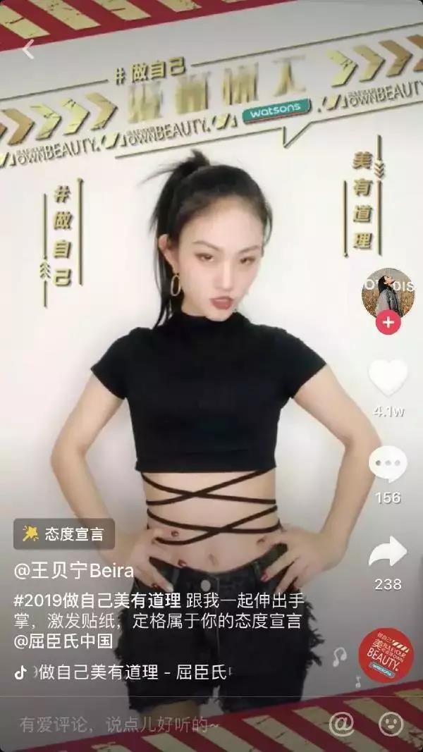 在洞察到這一點后,這個新春伊始,屈臣氏就聯(lián)手抖音商業(yè)化打造#2019做自己美有道理 挑戰(zhàn)賽,通過UGC活動讓用戶主動理解和傳播品牌態(tài)度,同時鼓勵每一個愛美的小姐姐面對真實的自己,探索美的無限可能。