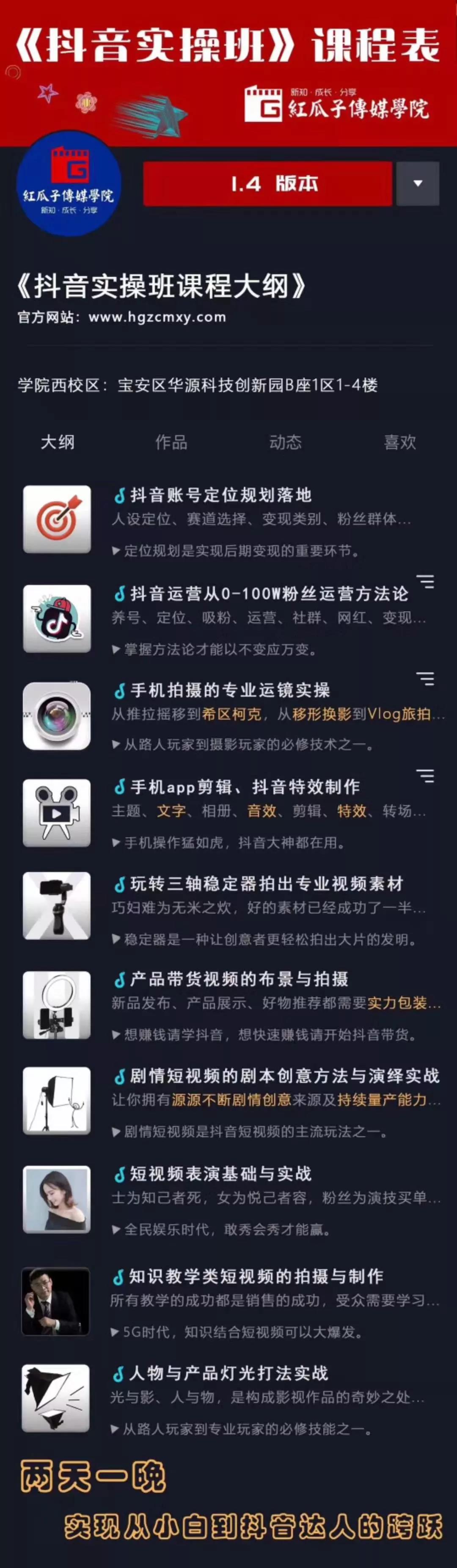 兩天一晚的培訓(xùn),讓你實(shí)現(xiàn)從小白到抖音達(dá)人的跨躍,本次培訓(xùn)的具體內(nèi)容包括以下10點(diǎn)