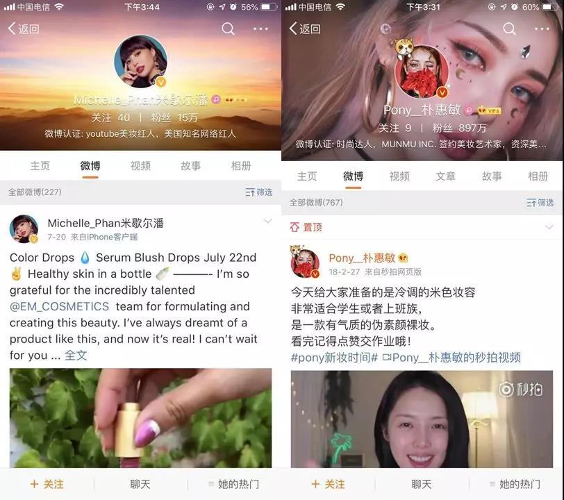 Pony在微博開設(shè)賬號的同一年,更早成名的Michelle_Phan和YUME美妝合作,開了微博賬號,但從文案到視頻再到內(nèi)容,沒有進行任何本地化,運營3年,粉絲尚未突破20萬。