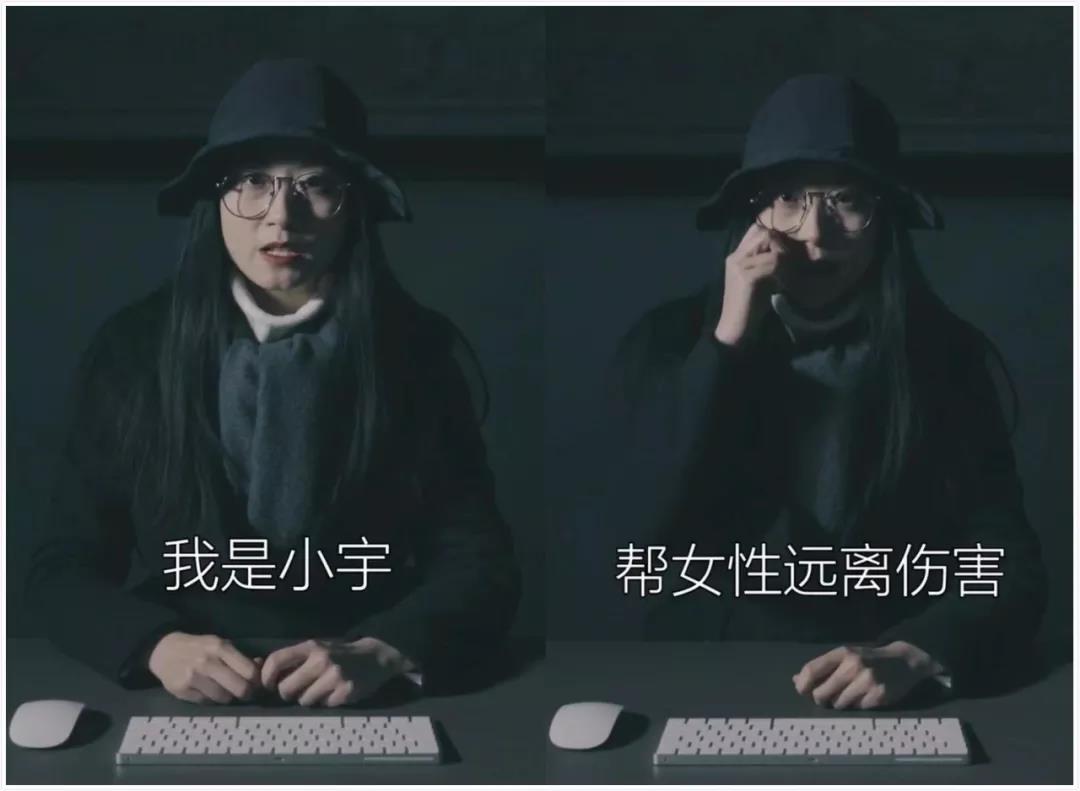 例如小宇的穿著打扮永遠(yuǎn)都是黑帽子+黑大衣+大框鏡,聽到危險耳朵會動,推理案情的時候會習(xí)慣性扶一下眼鏡,視頻結(jié)尾永遠(yuǎn)都是那句:我是小宇,幫女性遠(yuǎn)離傷害。